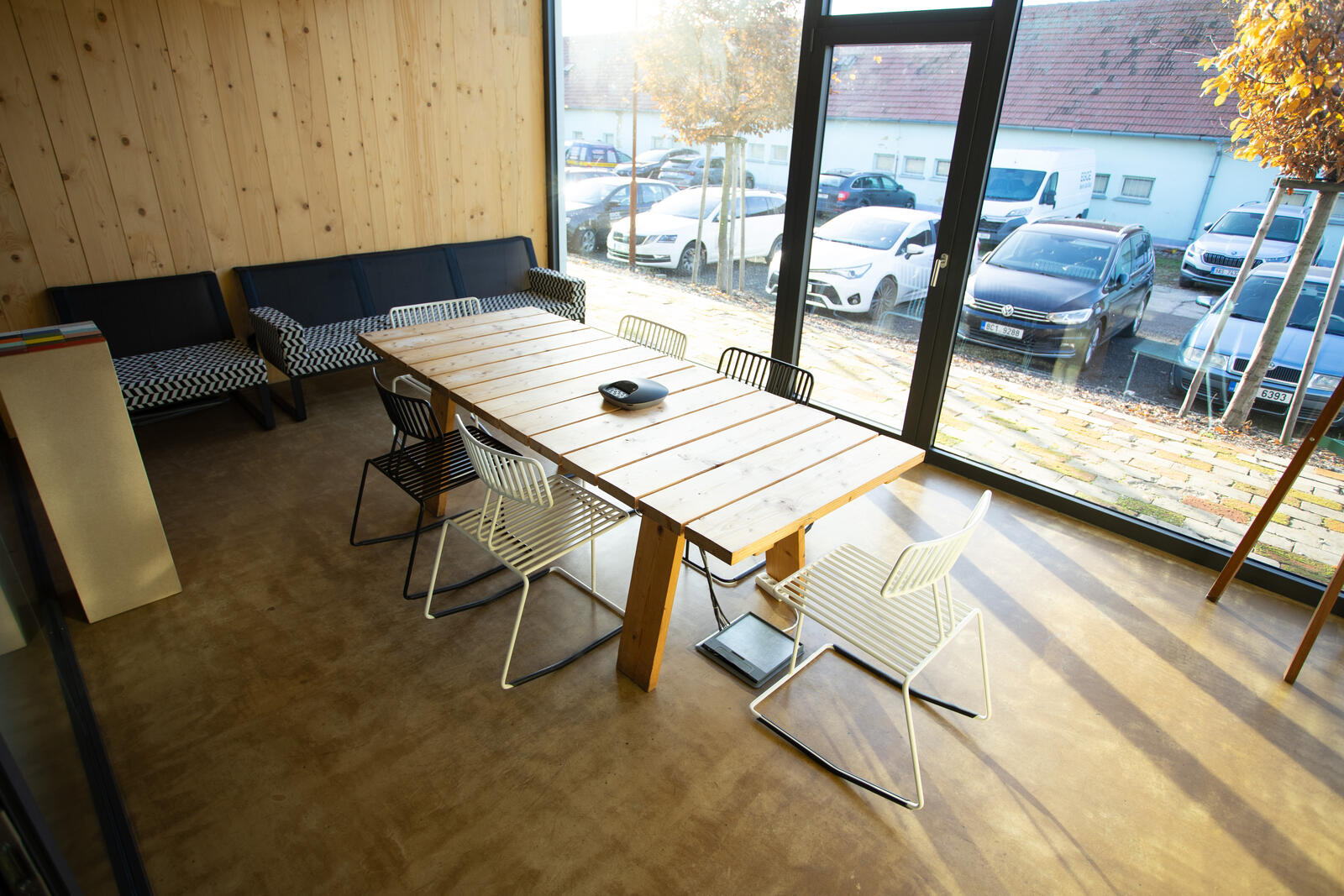 - Prostor pojme až 20 lidí, sezení v pohovkách a křeslech. Zázemí v podobě kuchyňky, samoobslužného baru. K tomu chill out prvky – pohovky, ping-pong, hry, knihovna.