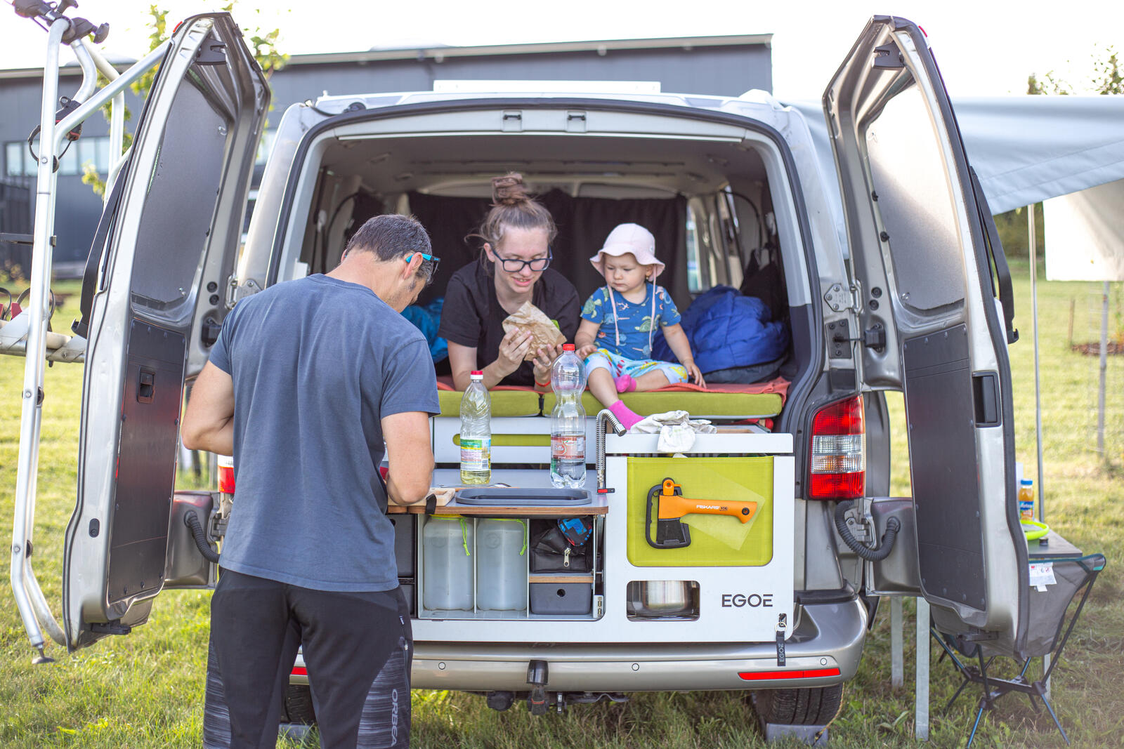Karimatku jsme nahradili sendvičovou matrací. Kotlík vařičem, čutoru nádrží s čerpadlem. A vše vměstnali do stanu na čtyřech kolech. Odkazujeme na tradice trampingu, navazujeme na jeho čisté emoce.