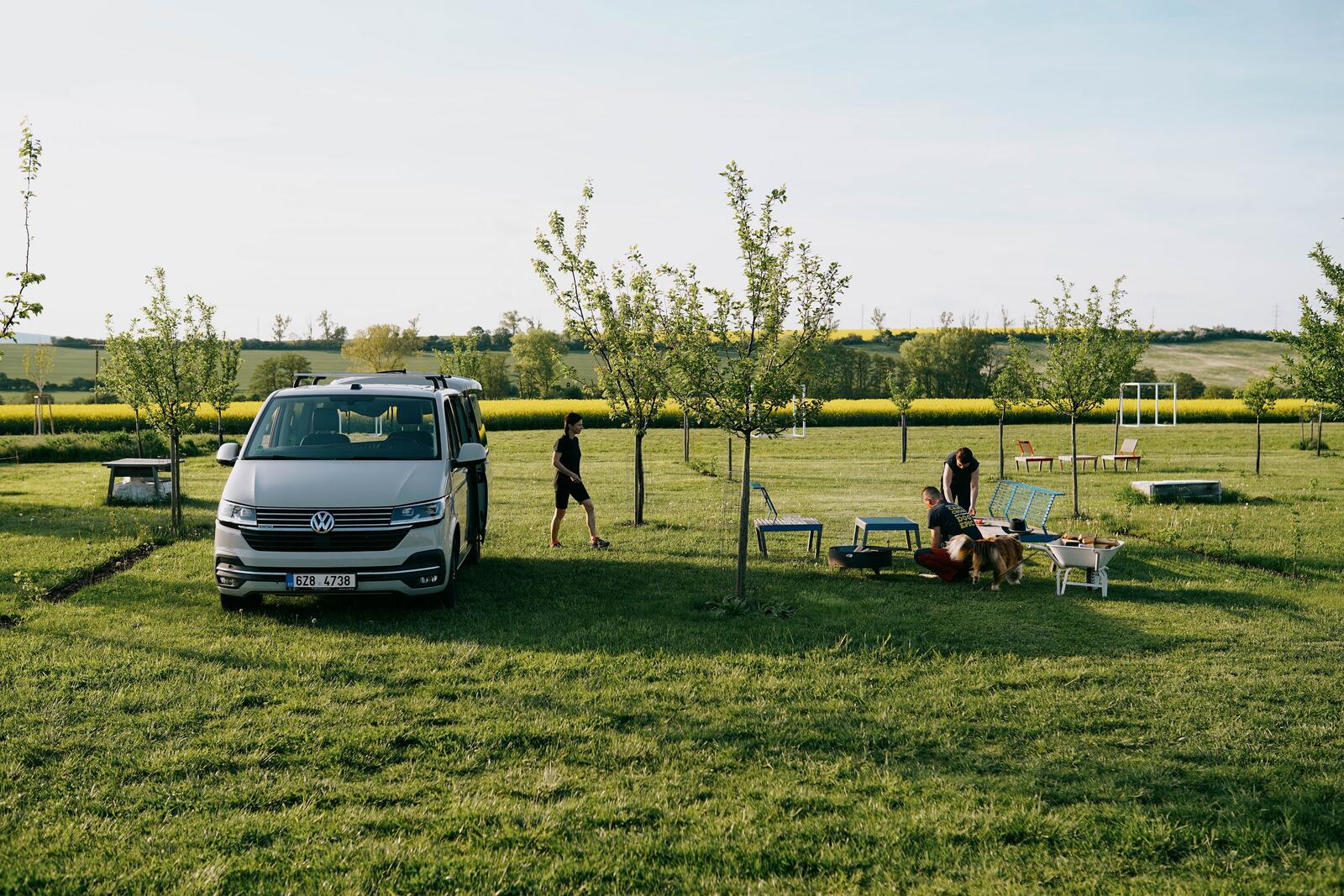 Vpředu dvě trnky, vzadu meruňka a jabloň. Přesně takto může vypadat místo, kde v areálu zaparkujete bydlík, karavan nebo auto s obytnou vestavbou. Kromě stromů totiž v sadu vyrostly i sloupky s elektřinou.