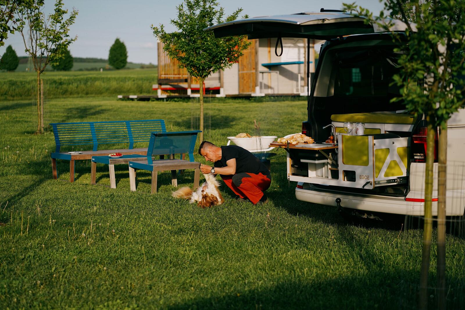 Karimatku jsme nahradili sendvičovou matrací. Kotlík vařičem, čutoru nádrží s čerpadlem. A vše vměstnali do stanu na čtyřech kolech. Odkazujeme na tradice trampingu, navazujeme na jeho čisté emoce.