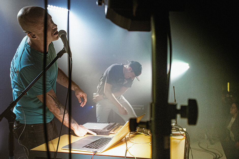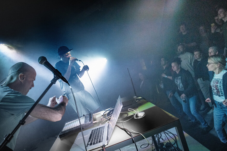 Kultovní kapela, která se při hledání vlastní cesty otřela o hip-hop, rap, elektro a kdoví co ještě. K tomu zdánlivě absurdní texty. Formace, tvořená rapperem Janem Vejražkou a hudebníkem Jiřím Konvalinkou, se postarala o start Klubu 603. Spolu se stovkou návštěvníků, kteří nový prostor na Poli designu zcela zaplnili.