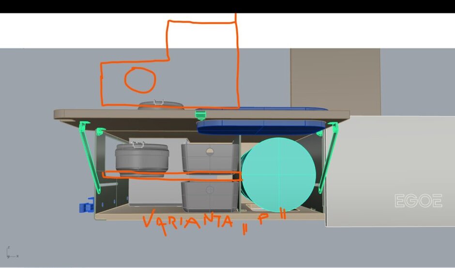 Nejprve jsme museli zúžit konstrukci tak, aby se vešla do kufru s otvorem širokým jen 95 cm. To znamenalo učinit několik změn ve funkčních modulech. Šířka například diktovala velikost spacího prostoru. Jeho délka činí stále velmi komfortních 195 cm.
