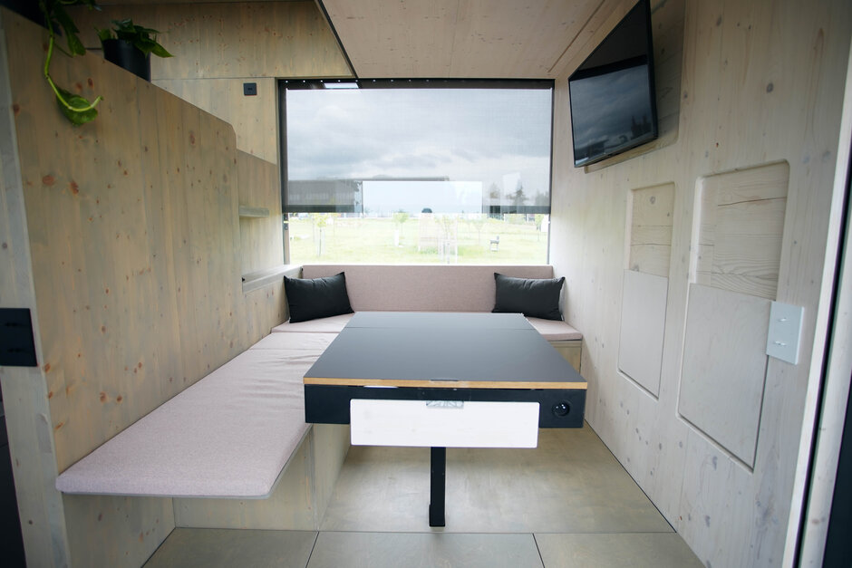 Domky jsou součástí nově otevřeného ubytovacího a zážitkového areálu Kempus na poli, který najdete v Bílovicích u Uherského Hradiště. Jeho součástí jsou i výstavní prostory s kreativními dílnami nebo Stezka designu mapující vývoj produktů od nápadu až k výrobě.